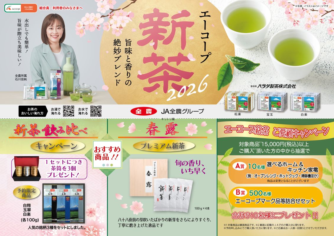 抽選で以下の賞品を合計510名様にプレゼント!A賞:「選べるホーム&キッチン家電」(例:オーブンレンジ・ホットクック・掃除機ほか)<10名様>B賞:エーコープマーク品等詰め合わせ<500名様>